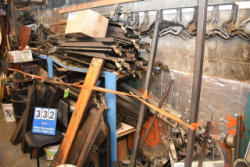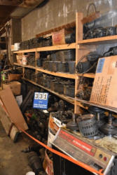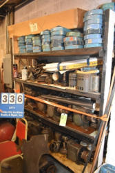Shelving unit with contents consisting of gear boxes, motor housings, brackets