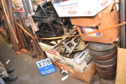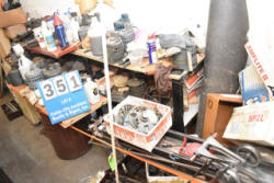 Shelving unit with contents consisting of machine parts including machine parts and ball return parts