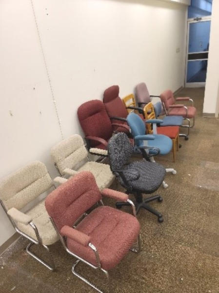 Lot of approximately 10 +/- chairs, located at Schenectady County Office Bldg., 2nd floor, 620 State St. Schenectady, NY 12305