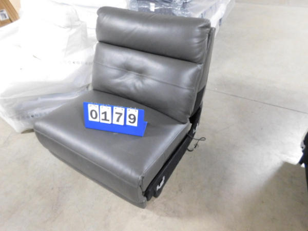 Grey leather power center recliner. Overstock item from Macy's, sold "As Is".