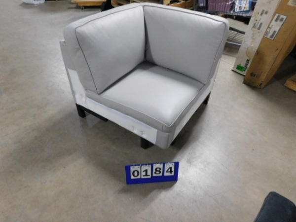Light Grey corner leather chair. Overstock item from Macy's, sold "As Is".