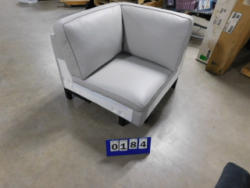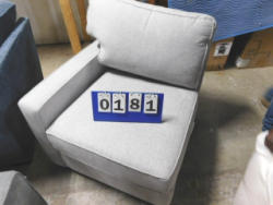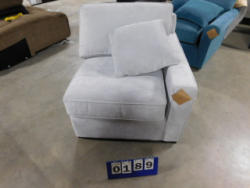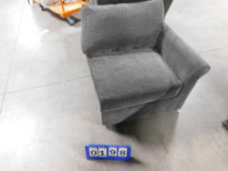 Grey fabric corner chair. Overstock item from Macy's, sold "As Is".