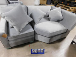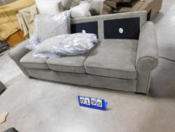 Grey 2 piece corner loveseat. Overstock item from Macy's, sold "As Is".