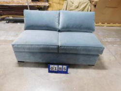 Fabric armless loveseat. Overstock item from Macy's, sold "As Is".