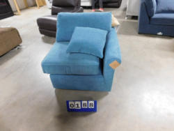Turquise fabric corner chair. Overstock item from Macy's, sold "As Is".