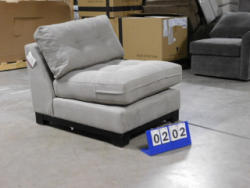 Dark grey armless chair. Overstock item from Macy's, sold "As Is".