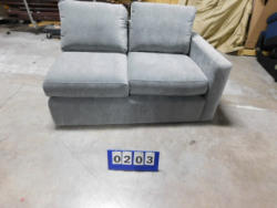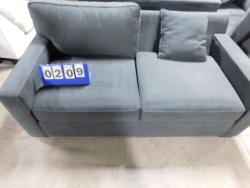 Grey fabric loveseat. Overstock item from Macy's, sold "As Is".