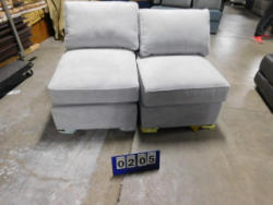 Pair of light gray armless chairs-can be hooked together. Overstock item from Macy's, sold "As Is".