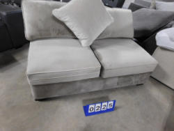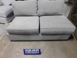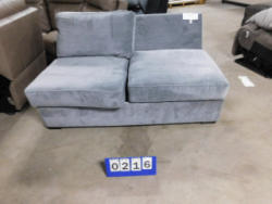 Fabric armless loveseat. Overstock item from Macy's, sold "As Is".
