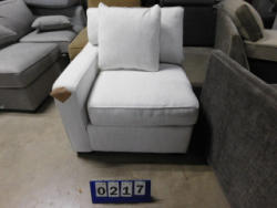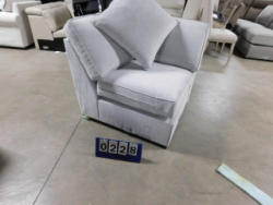 Fabric corner chair. Overstock item from Macy's, sold "As Is".