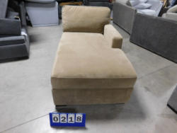 Brown fabric chaise. Overstock item from Macy's, sold "As Is".