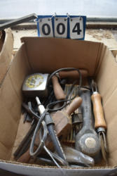 Oritron DVD player, Compaq Presario laptop, wire brush, etc.