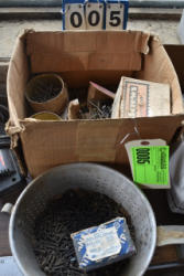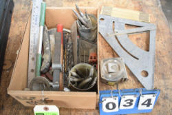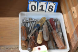 Box lot of tools consisting of window screen tools, chisels, tape measure, etc.