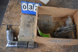 Shelf lot including Craftsman Jigsaw, 3" x 21" belt sander, pneumatic stapler and nail gun