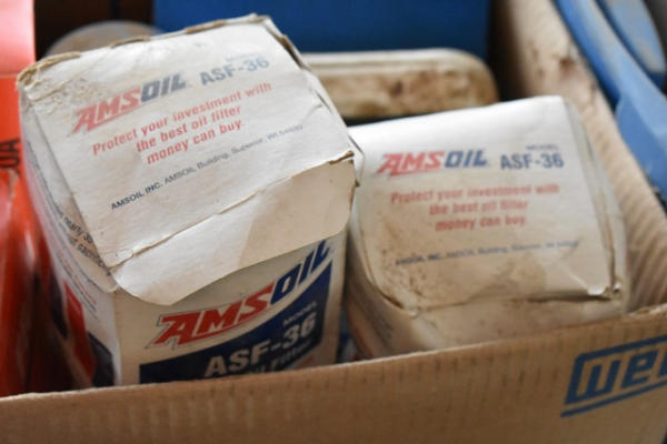 Box lot of assorted oil filters and gear lube