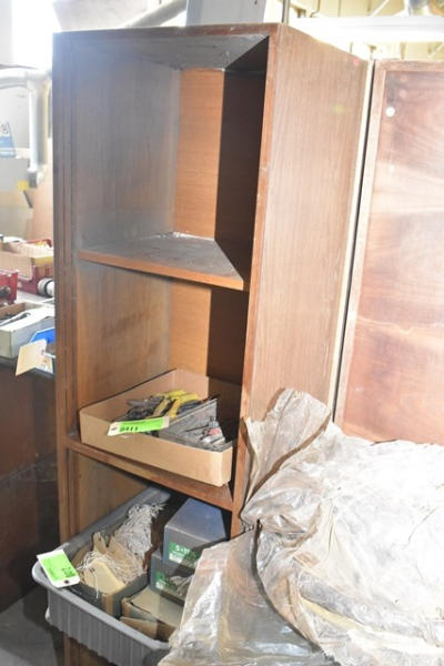 Lot of 3 wooden cabinets approx. 6' tall and homemade work bench (CANNOT BE REMOVED UNTIL THE LAST DAY OF REMOVAL)