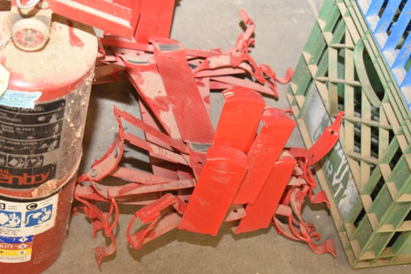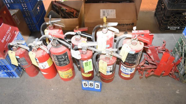 Approx. 9 fire extinguishers, some with brackets