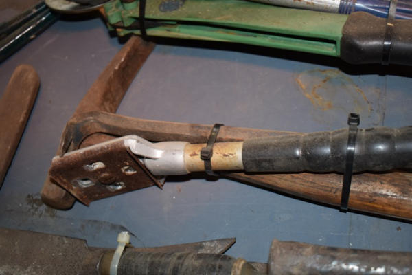 Lot of tools including slate rippers and slate hammer, scrapers, etc.
