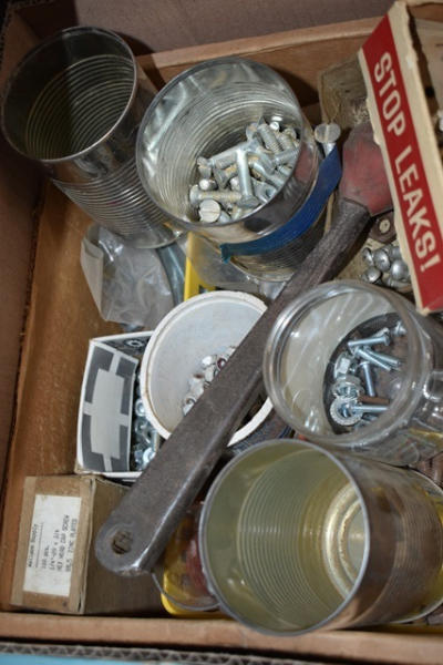 Box lot consisting of washers, screws, machinist's bolts, gas tank plugs
