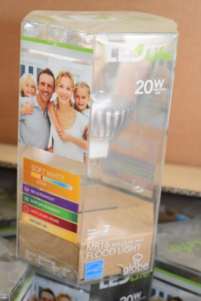 Box of LED bulbs, MR16 flood light bulbs