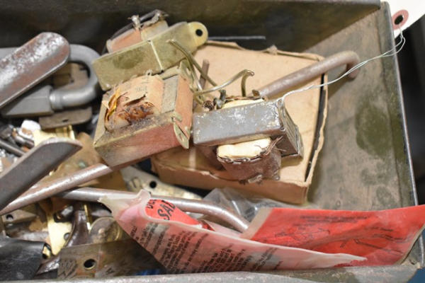 Box lot including transformers, magnetic flexible strip, rivets