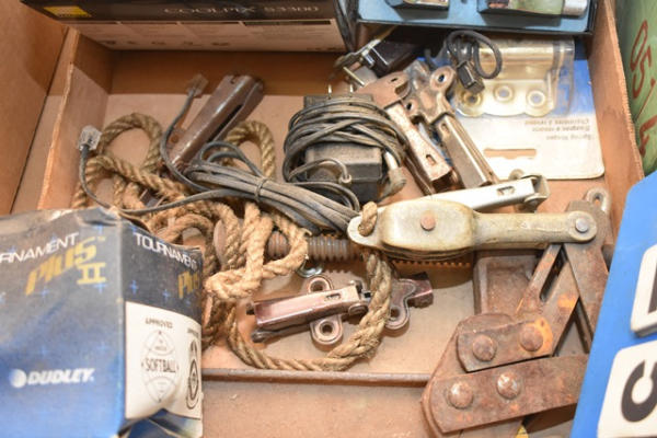 Box lot including Nikon Cool Pix Digital Camera, light bulbs, softball, etc.