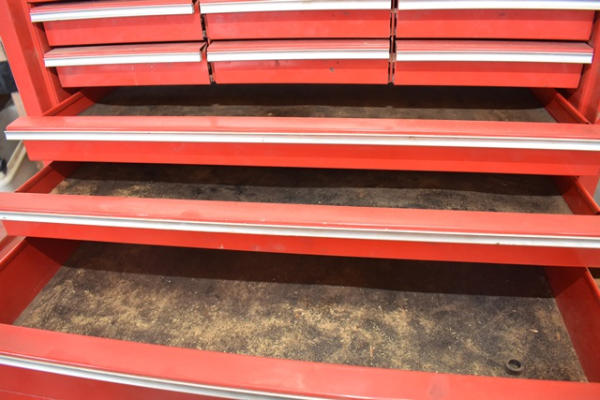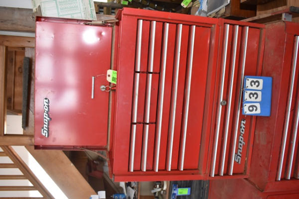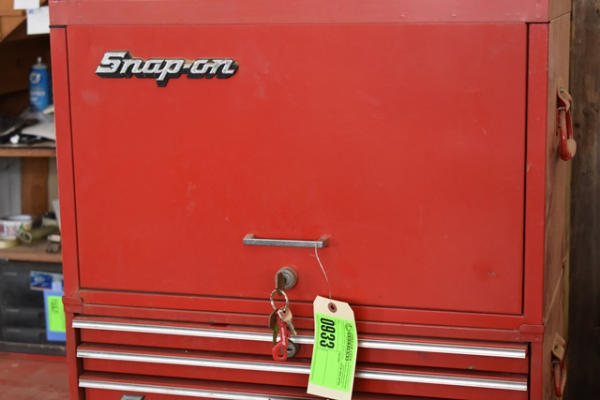 Snap-on toolbox, 4 sections with bottom, middle, top, locker, and shelf (KEYS FOR THE TOP TOOLBOX ONLY)