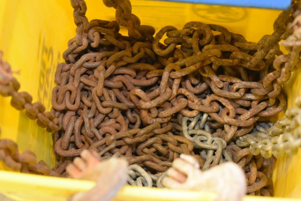 Box lot of assorted tow chains, appears to be 4 small chains
