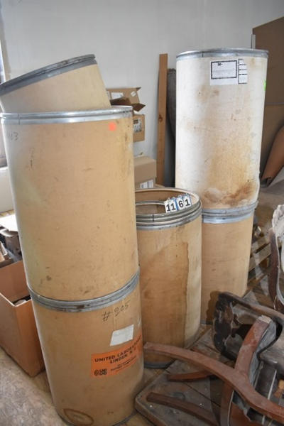 Lot of assorted chairs, cardboard 55 gallon and 30 gallon drums