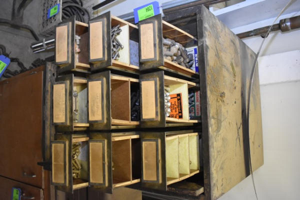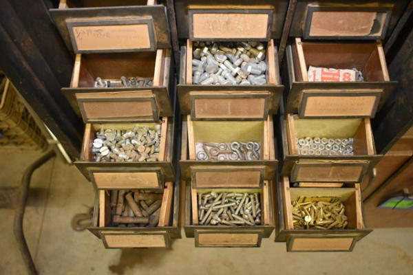 30-drawer organizing bin with machine screws, bolts, wood screws, nuts, etc.