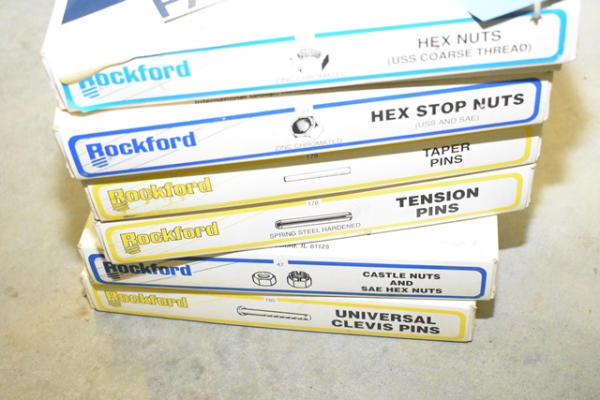 Lot of Rockford fasteners including nuts, tapered pans, tension pans, castle nuts, etc.