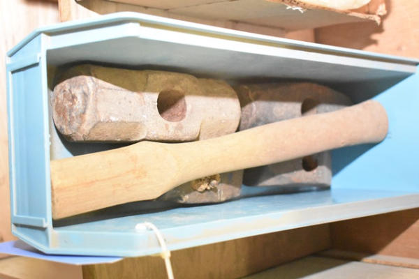 Lot of sledge hammer heads and handle