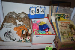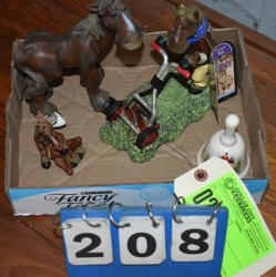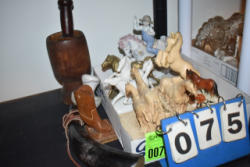 #48 - Box lot of knick knacks including horse and carriages in plastic and ceramic