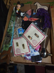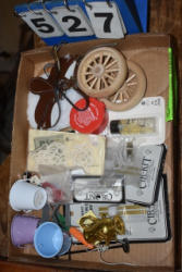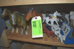 Box lot of knick knacks including horse and carriages in plastic and ceramic
