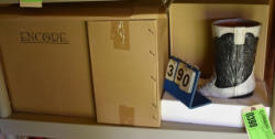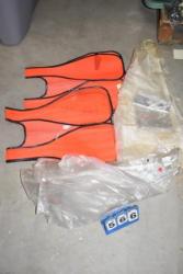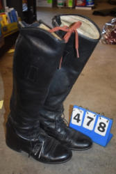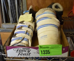 Tote lot of shipping and fly boots, Baker fly boots, red shipper, 2 of 2 blue quilt, etc.