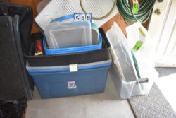 Lot of 2 totes consisting of assorted equine care and products and bandages