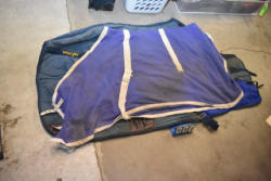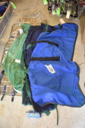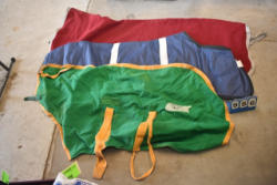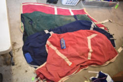 Full box of misc. used leg wraps and saddle quilts