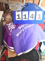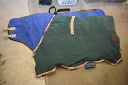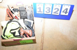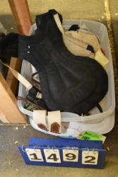 #1494 - Full box of misc. used leg wraps and saddle quilts