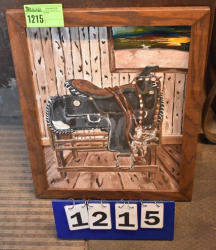 #6 - Horse with bull painting, 34" x 28" framed