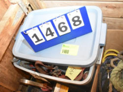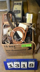 #1495 - Box lot of assorted straps, blanket repair pieces