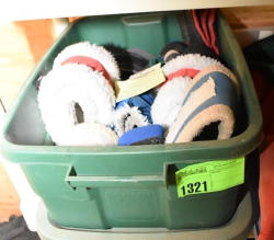 #1500 - Lot of 2 totes consisting of assorted equine care and products and bandages
