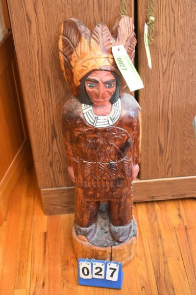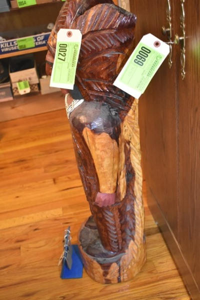 Native American statue hand carved in Pennsylvania by a now deceased artist, 36" tall
