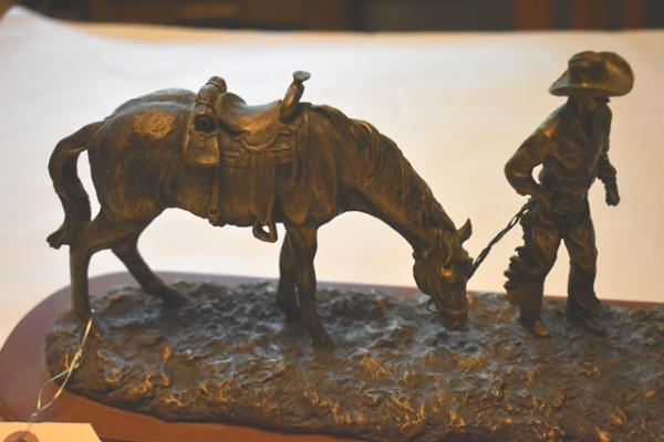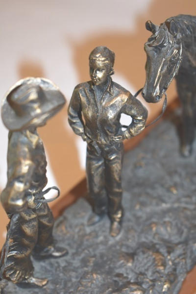 Montana Silversmith "Between Friends" statue on wood, 20" wide