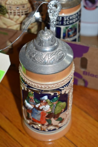 Lot of steins, marked Made in Japan, Made in Germany, very ornate steins