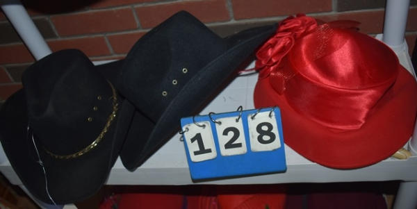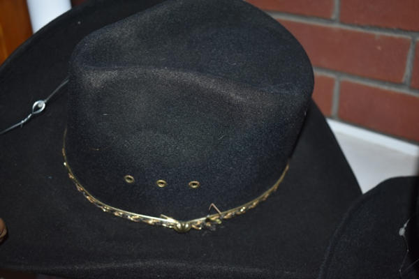 Shelf lot of 3 hats, 1 is size 6 7/8, 1 is a lady's dress hat