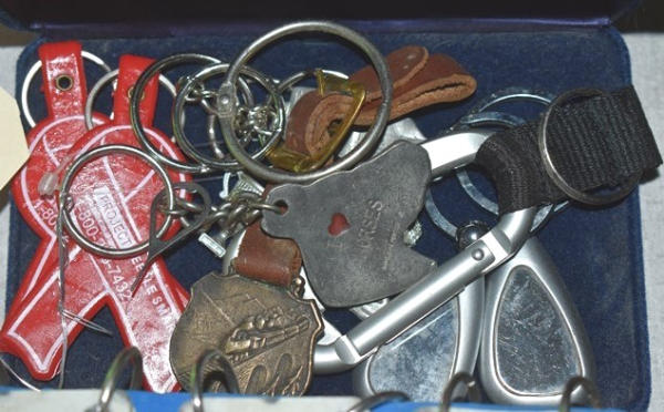 Lot of assorted keychains including horse, ribbons, etc.