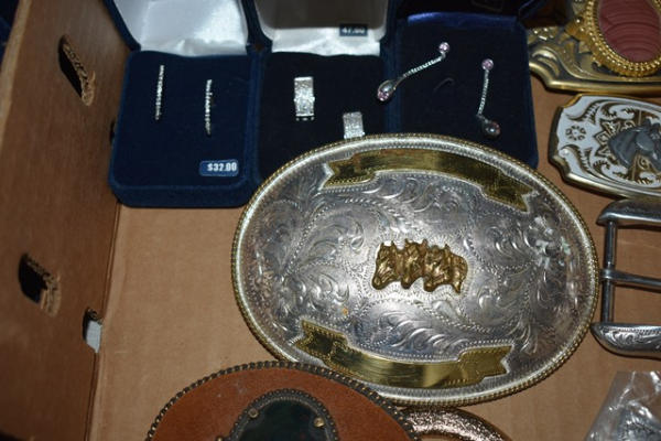 Lot of belt buckles including Pinto of the Year 2 time Champion