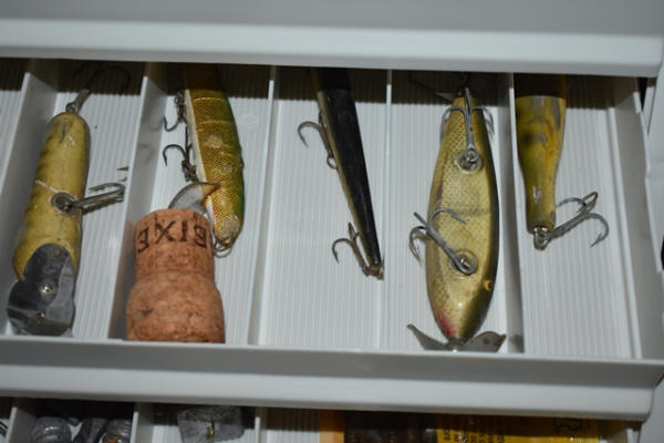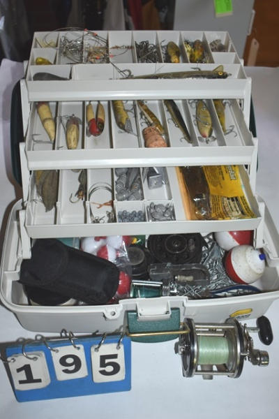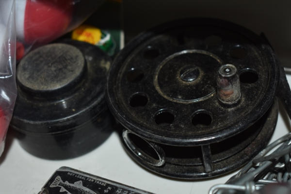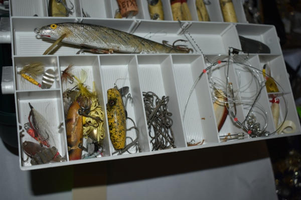 Fishing lot including vintage reel marked "409A", vintage lures, etc.