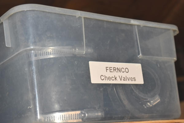 Shelf lot including Fernco, sink traps, gutter parts, etc.