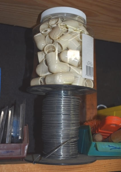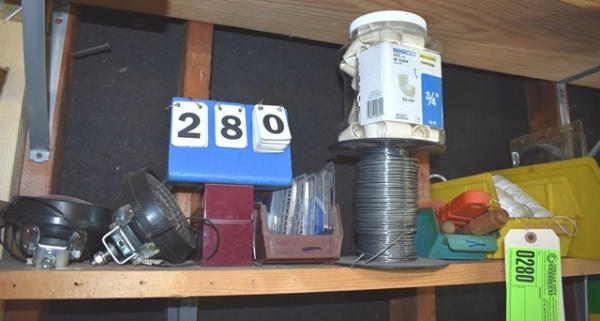Shelf lot including lighting, string, PVC fittings